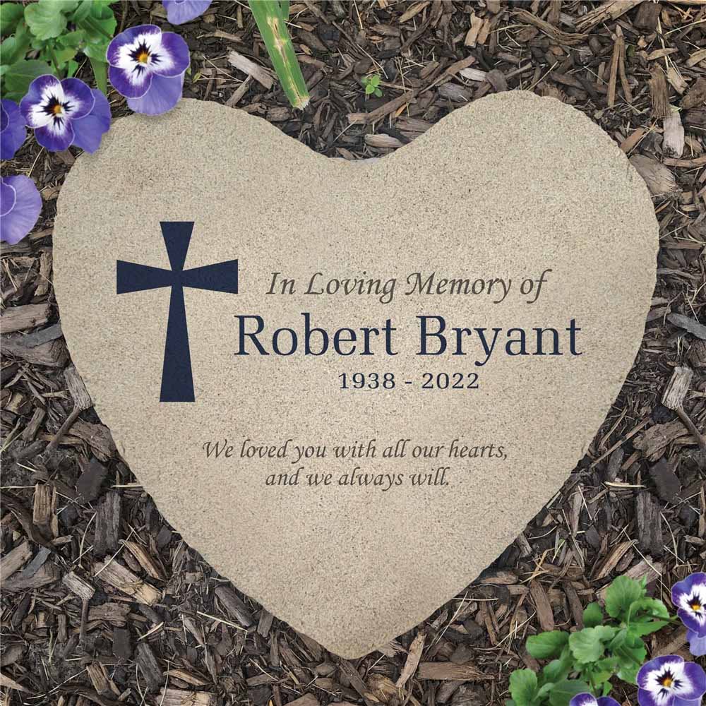By placing this beautiful memorial personalized flat heart-shaped stone in your yard they will always have a special place in your home.