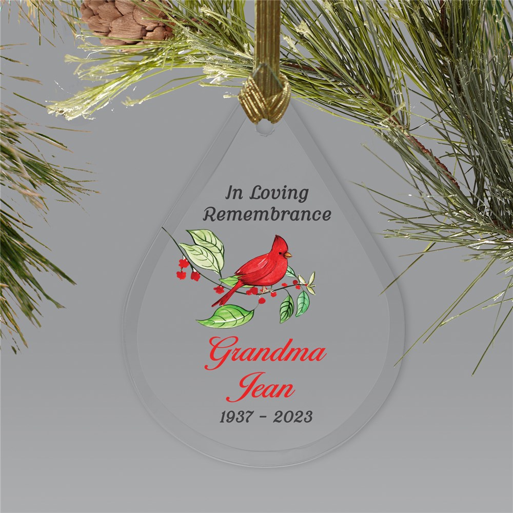 Everyday without your loved one can be incredibly tough, but with this Personalized In Loving Remembrance Cardinal Tear Drop Ornament, you can keep their memory close to your heart.