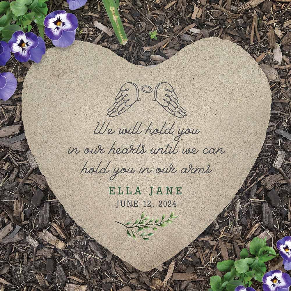 Create a special place in your yard or garden to honor your child with our Personalized In Our Hearts with Wings Heart Flat Stone.