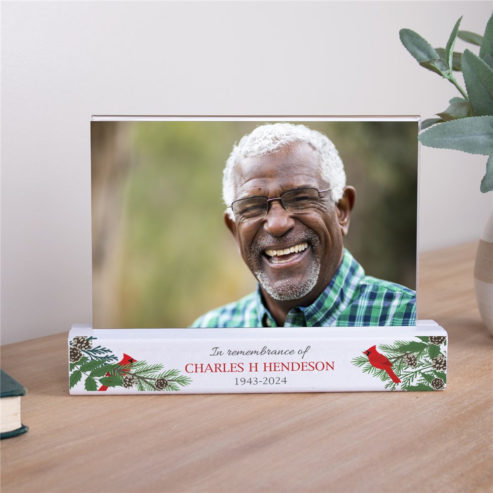Personalized In Remembrance with Winter Greens and Cardinal Photo Holder