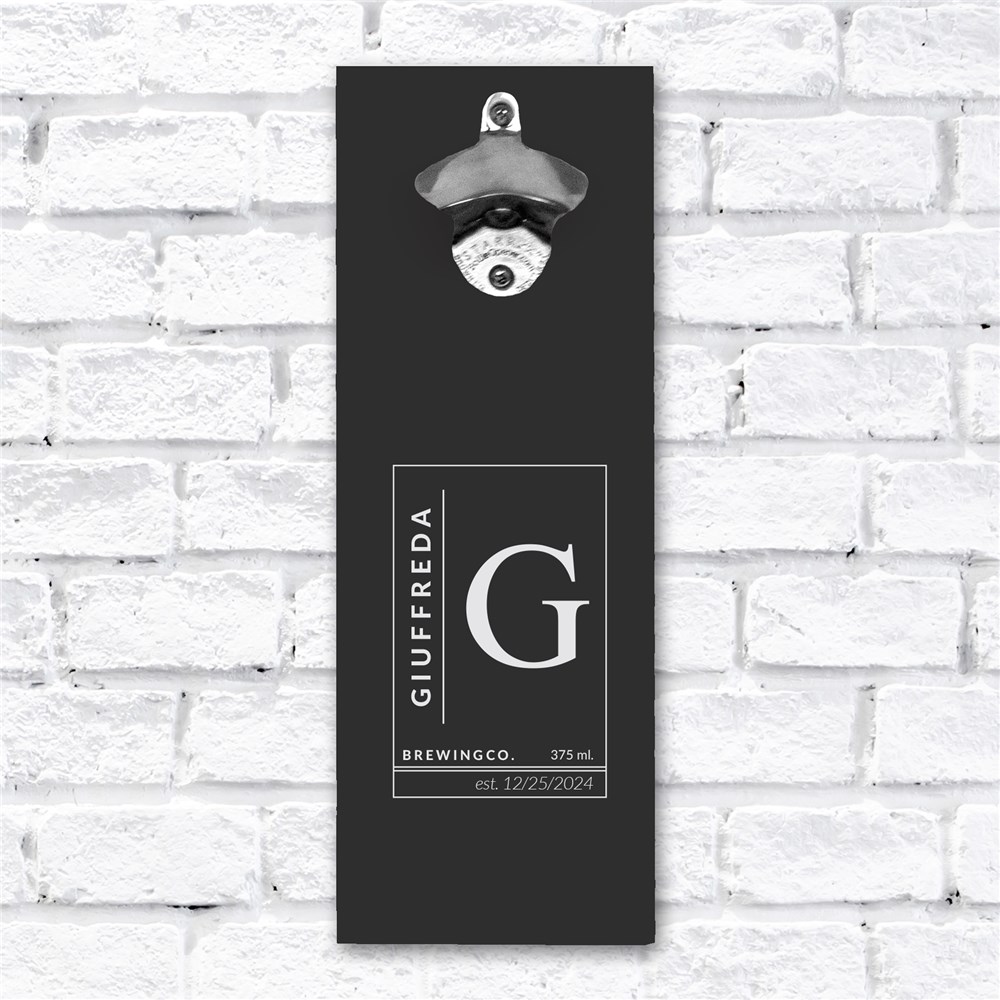 Every good bar needs a Personalized Initial Brewing Co. Bottle Opener. We will custom create this great gift with any Family Name, Initial and Custom Message. These make a great Personalized Gifts for Him for Father's Day, Birthday or Housewarming Party. All Personalized Men gifts are customized FREE and ship FAST!