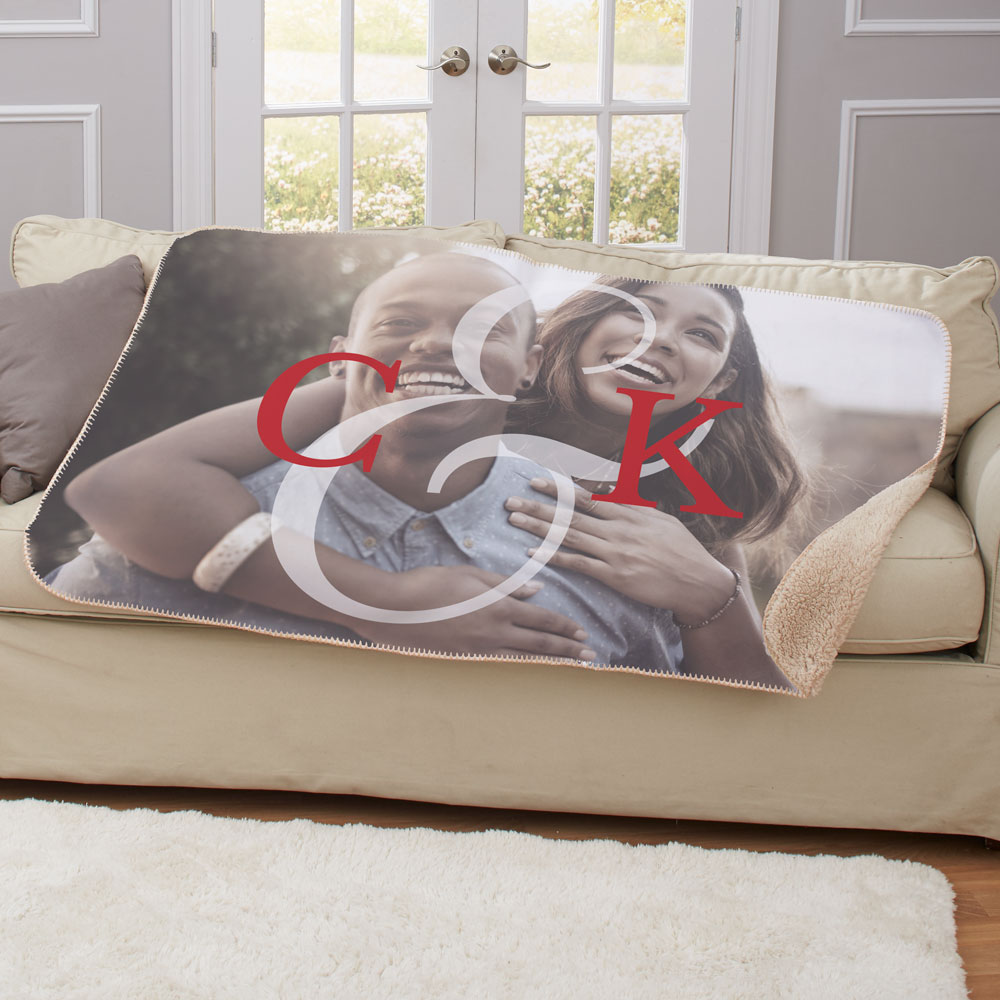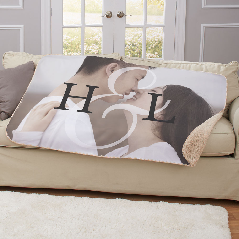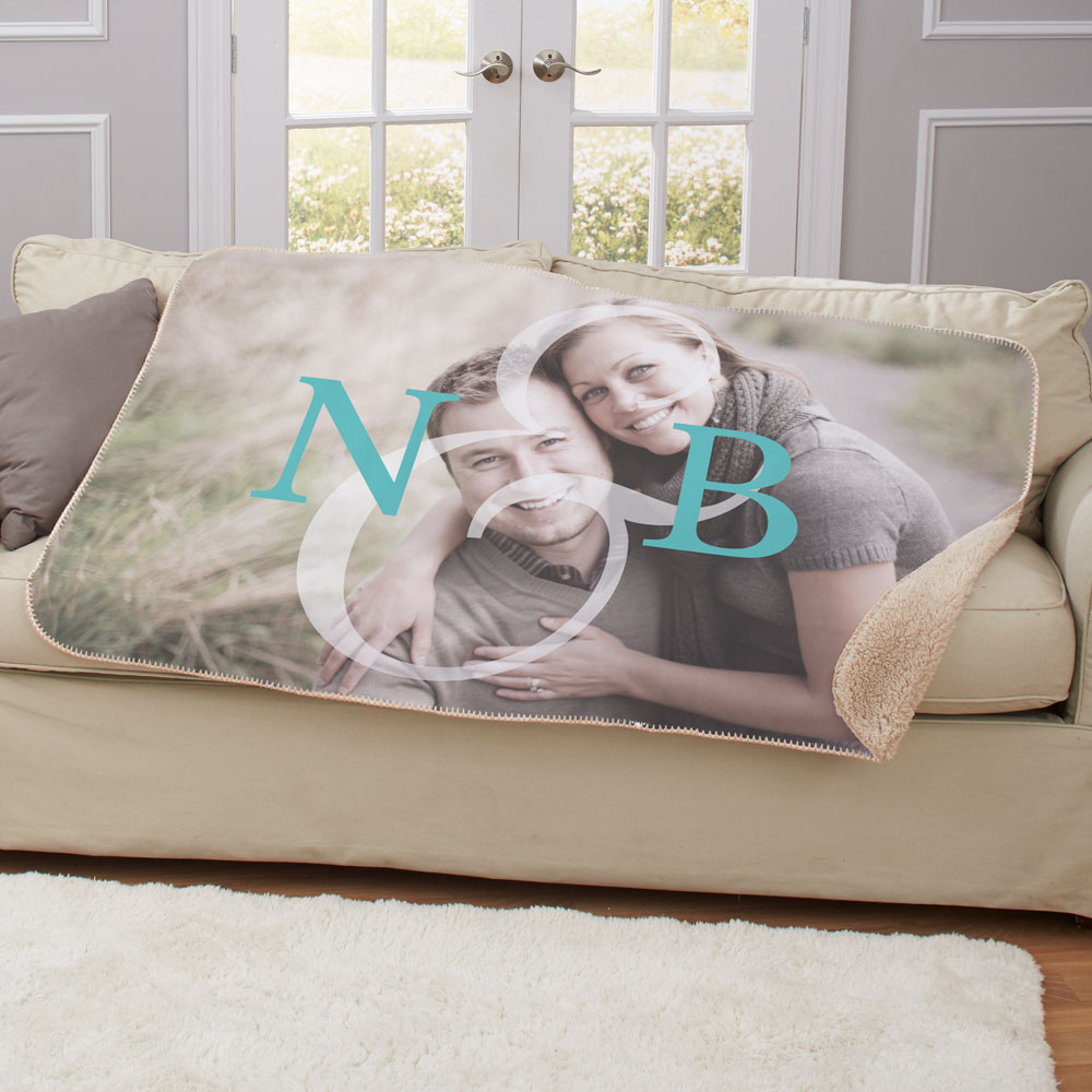 Curl up with your Valentine in our warm Personalized Initial Couples Photo Sherpa Blanket. Our Sherpa Blanket will be personalized with any photo and any 2 initials. These Personalized Couple Gifts make a great gift for Valentines Day, Wedding Gift or even a Housewarming Gift! All Personalized Gifts for Couples are customized FREE and ship FAST!