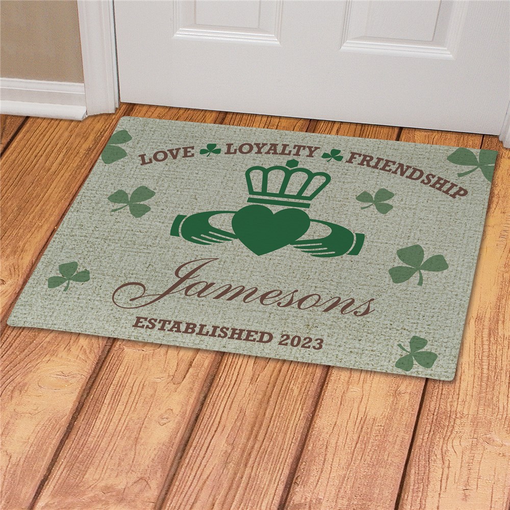 Add some Irish charm to your doorway this St Patrick's Day with a Personalized Irish Family Doormat. We will custom create, on your choice of doormat size, any family name line along with a custom message line to make a Irish themed addition to you St. Patrick's Day Decoration.