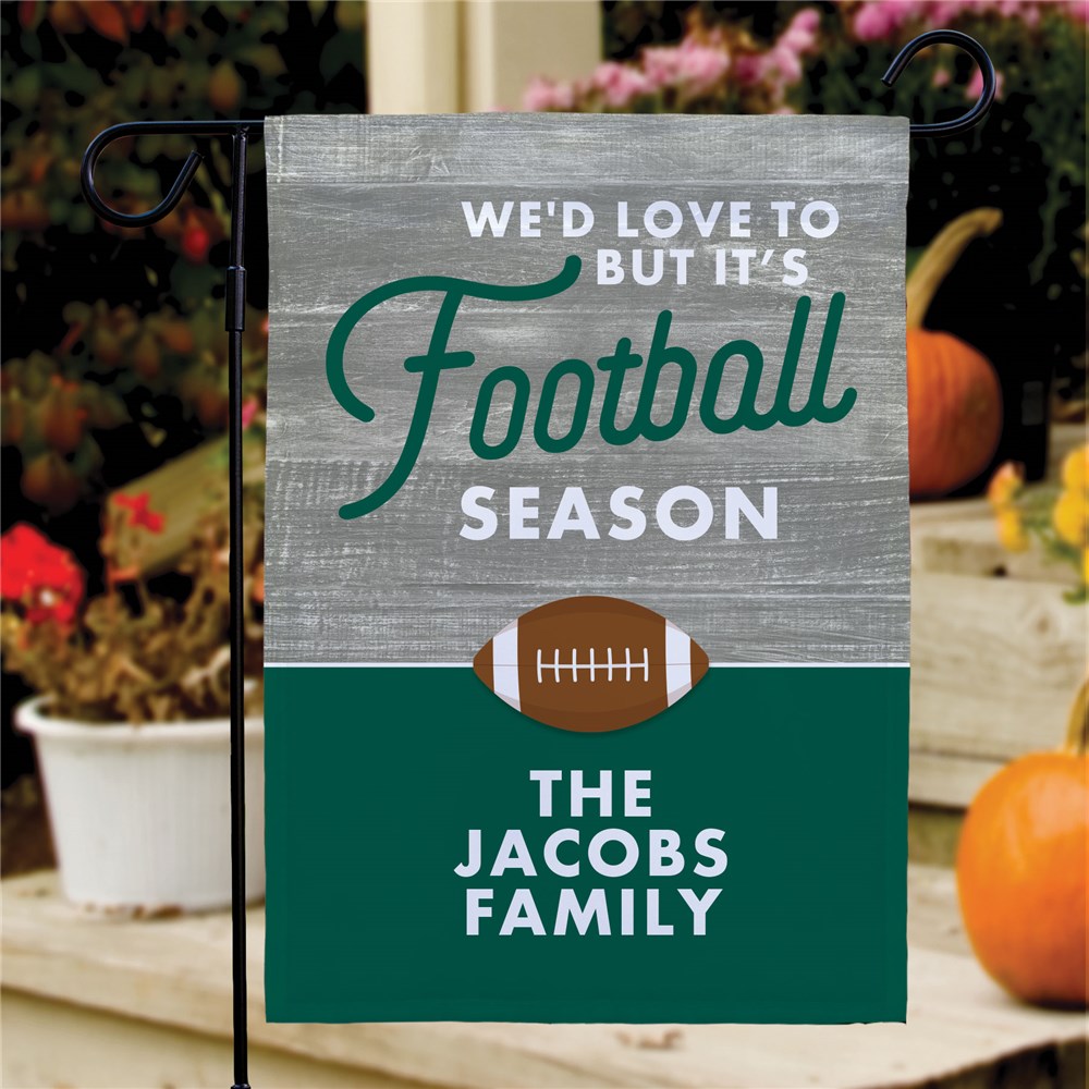 Any football-loving family should have our Personalized It's Football Season Garden Flag displayed in their front yard this fall!