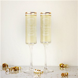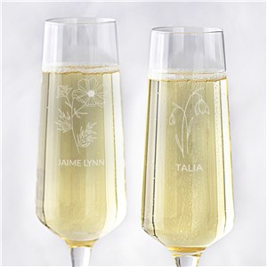 Engraved Birth Month Flower Gold Rim Champagne Flute Set