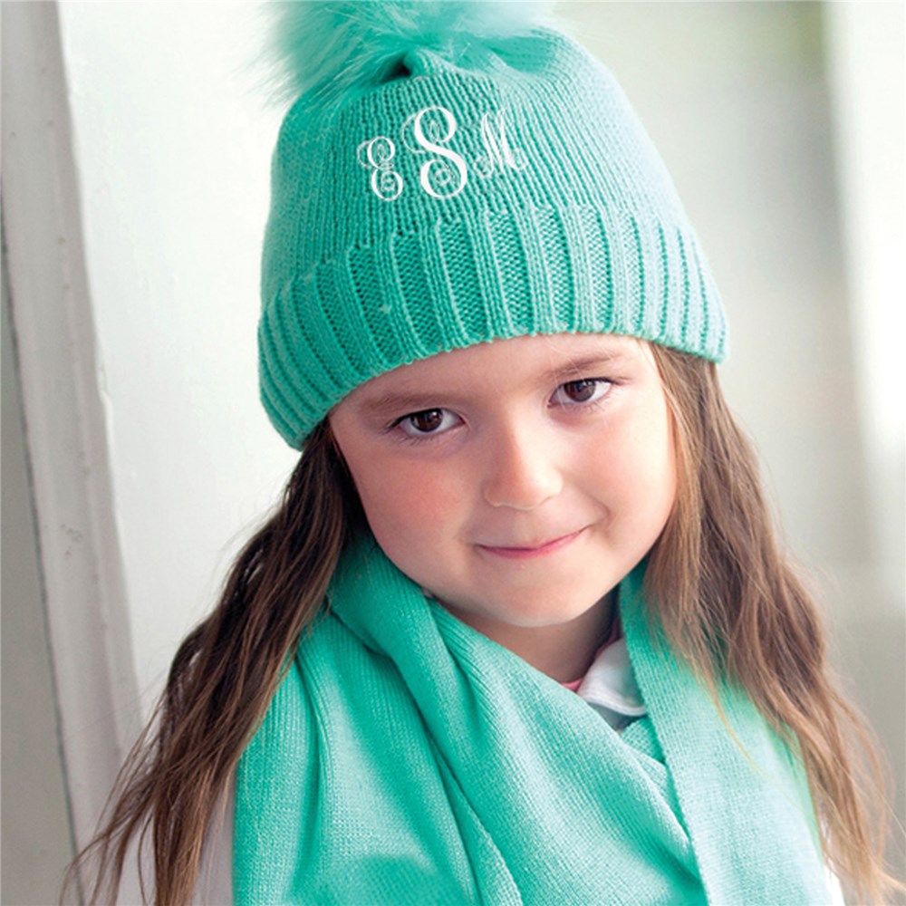 This monogrammed knit hat is super warm and can be personalized with your choice of monogram initials (first, last, middle on hat) and color options (Mint Green, Hot Pink and Navy).