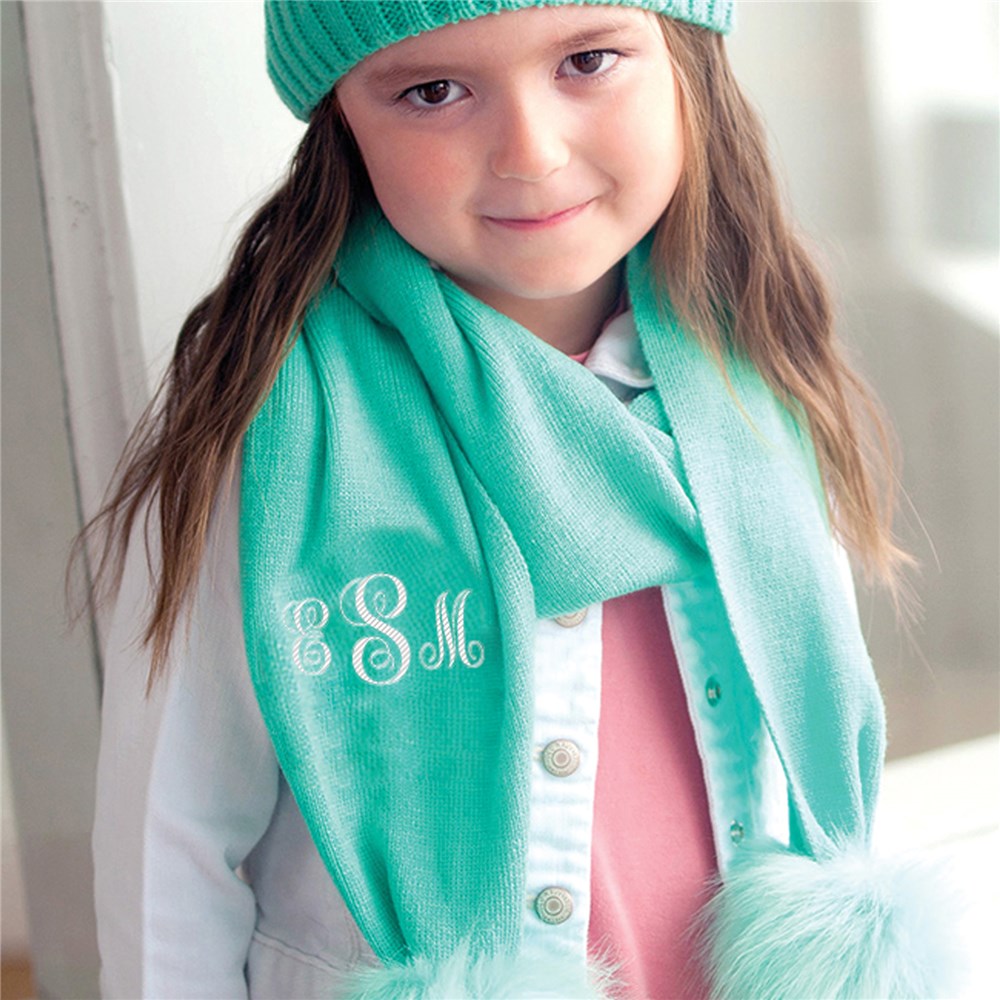 Our Personalized Kids Monogram Knit Scarf is great for keeping your little ones warm and stylish this winter.