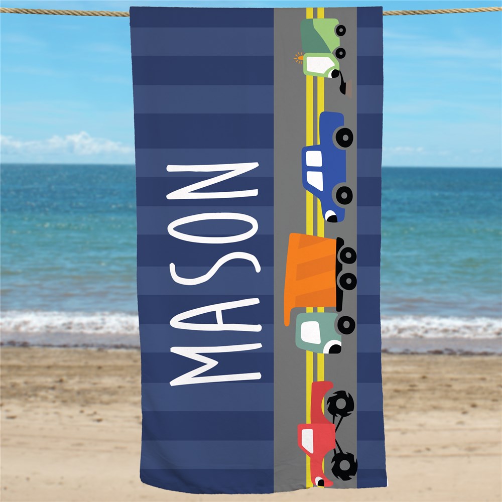 When your little guy has his own beach towel like our Personalized Kid's Truck Beach Towel, it will make swimming even more fun!