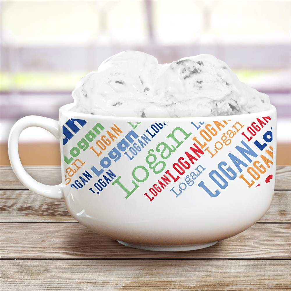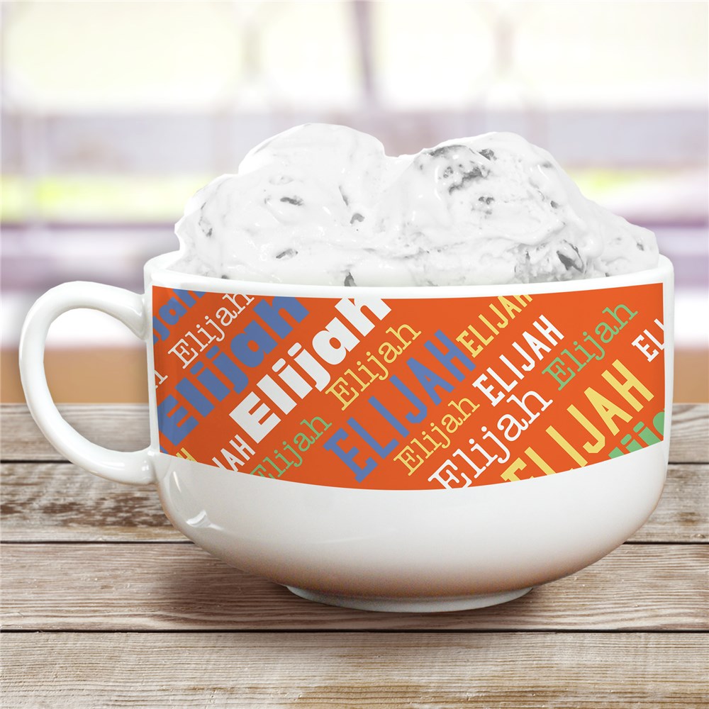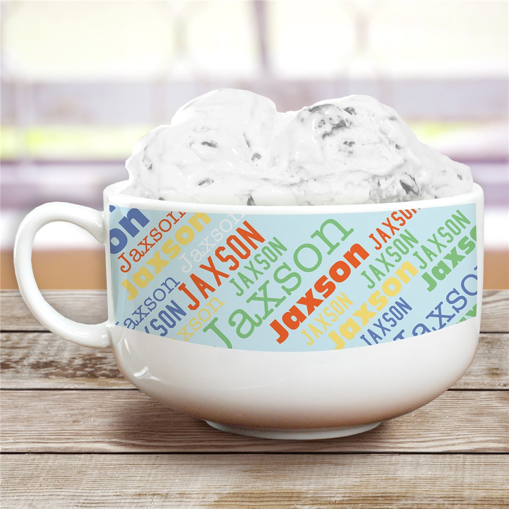 Treat your favorite person to a big bowl of ice cream or their favorite treats after a long day of school!Create our Personalized Kid's Word Art Bowl with Handle using our