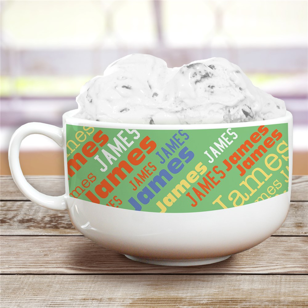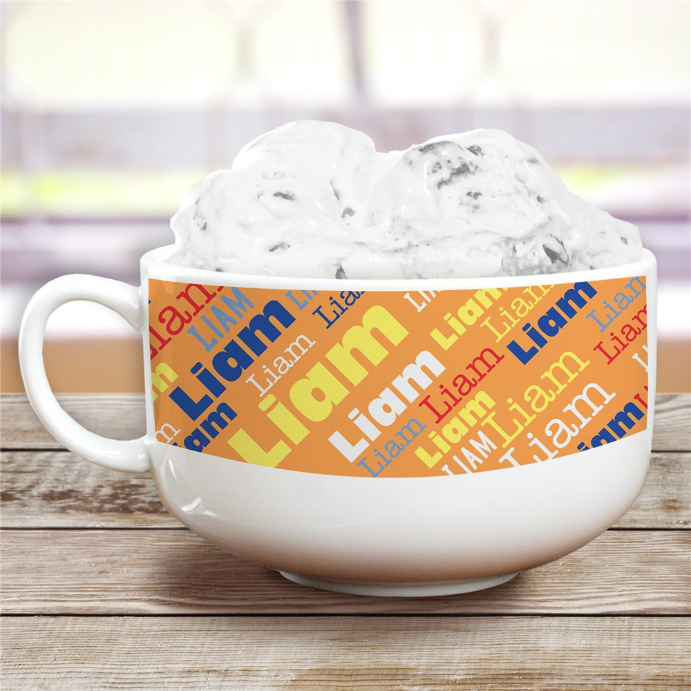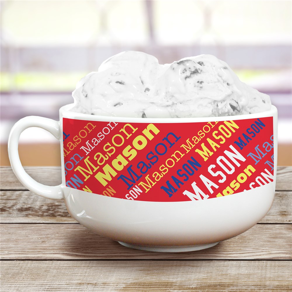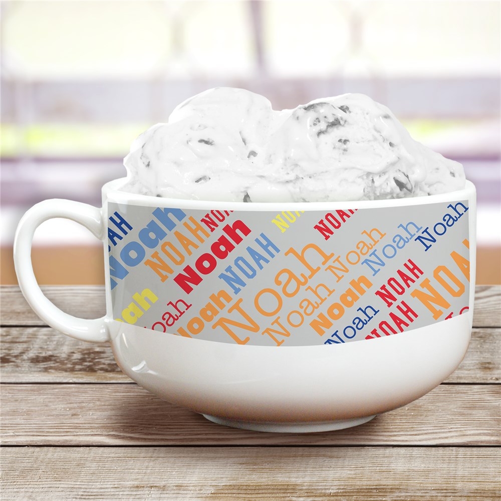 Treat your favorite person to a big bowl of ice cream or their favorite treats after a long day of school!Create our Personalized Kid's Word Art Bowl with Handle using our