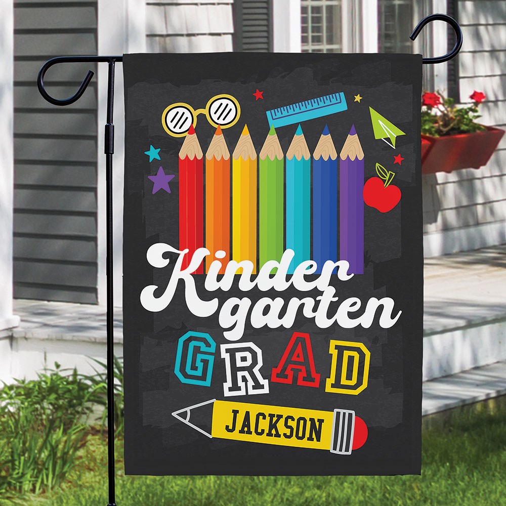 Celebrate your little graduate in style with this Personalized Kindergarten or Pre-K Graduation Garden Flag.