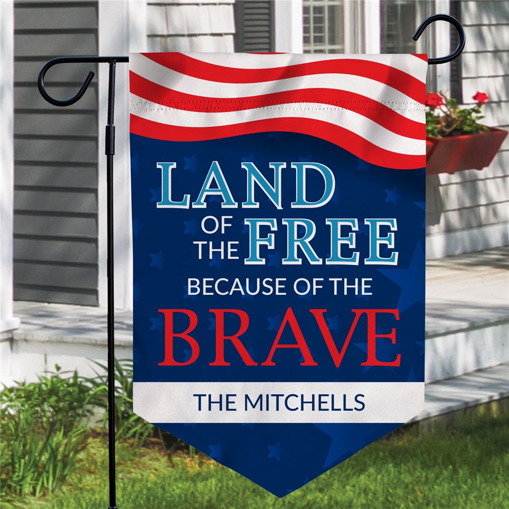 Show your respect for all who serve with our Personalized Land of the Free Pennant Garden Flag.