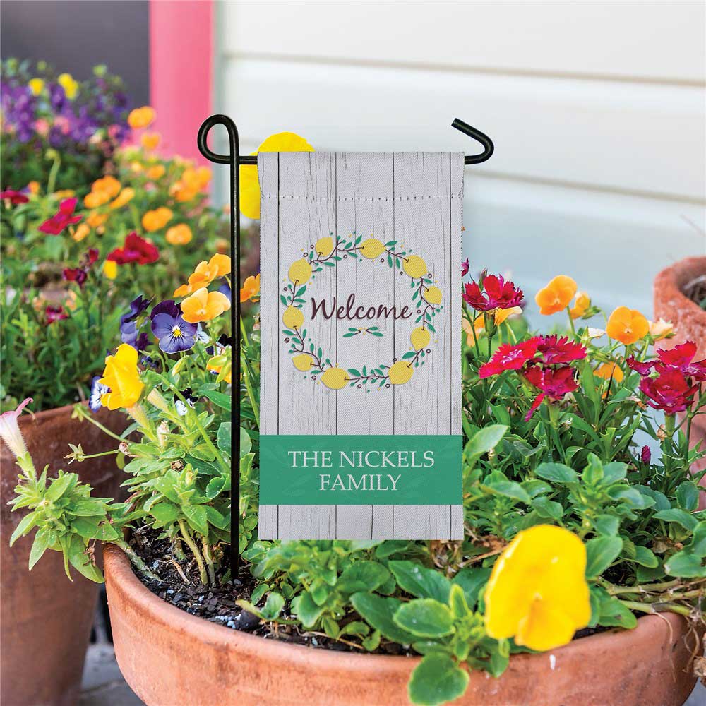 Personalized Lemon Welcome Wreath Mini Garden Flag