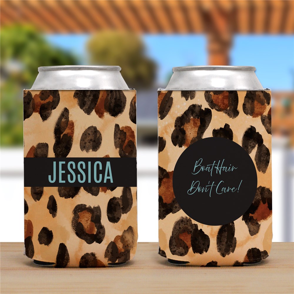 Featuring a stylish animal print design, this can cooler can be personalized with any name and 2 custom message lines.