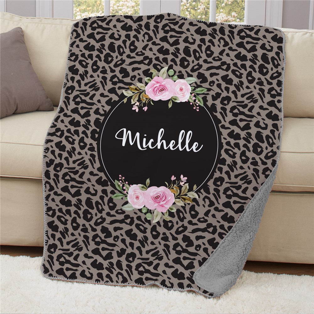 Personalized Leopard Floral Frame 50x60 Sherpa Blanket