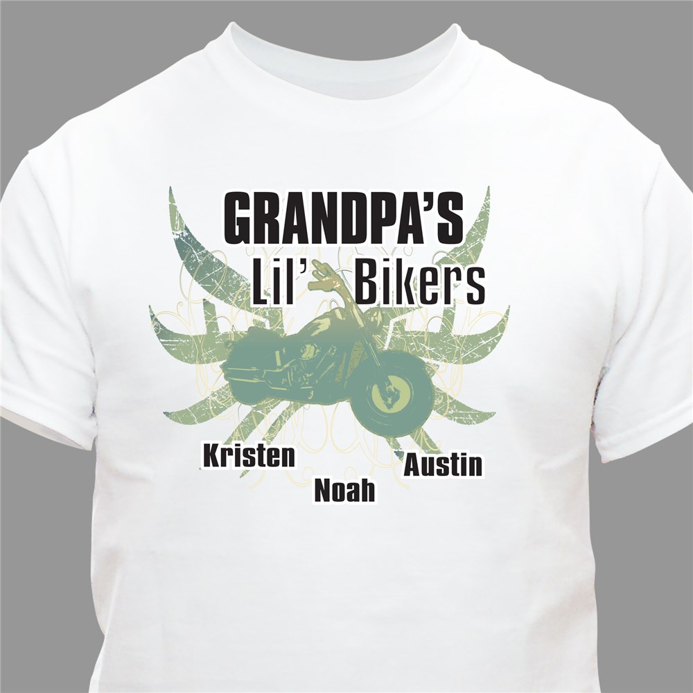 Whether he owns a hog or not, your motorcycle enthusiast will love this personalized little bikers t-shirt. Made out of premium, preshrunk 100% cotton, this custom motorcycle shirt is great as Personalized Grandpa Gifts and will be personalized with any title (up to 16 letters) and up to 30 kids' names (up to 12 letters per name)! Our custom biker shirt comes in adult sizes S-4XL and a multitude of colors.