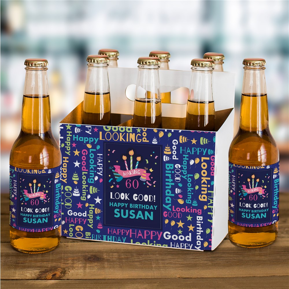 Personalized Looking Good Birthday Word Art Beer Labels and Carrier Set