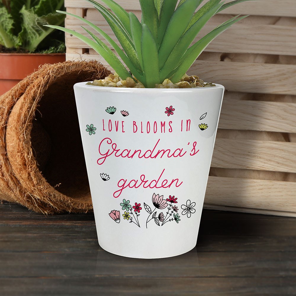 Celebrate the special gardener in your life with this Personalized Love Blooms Small Ceramic Flower Pot.We will personalize this flower pot with any title.