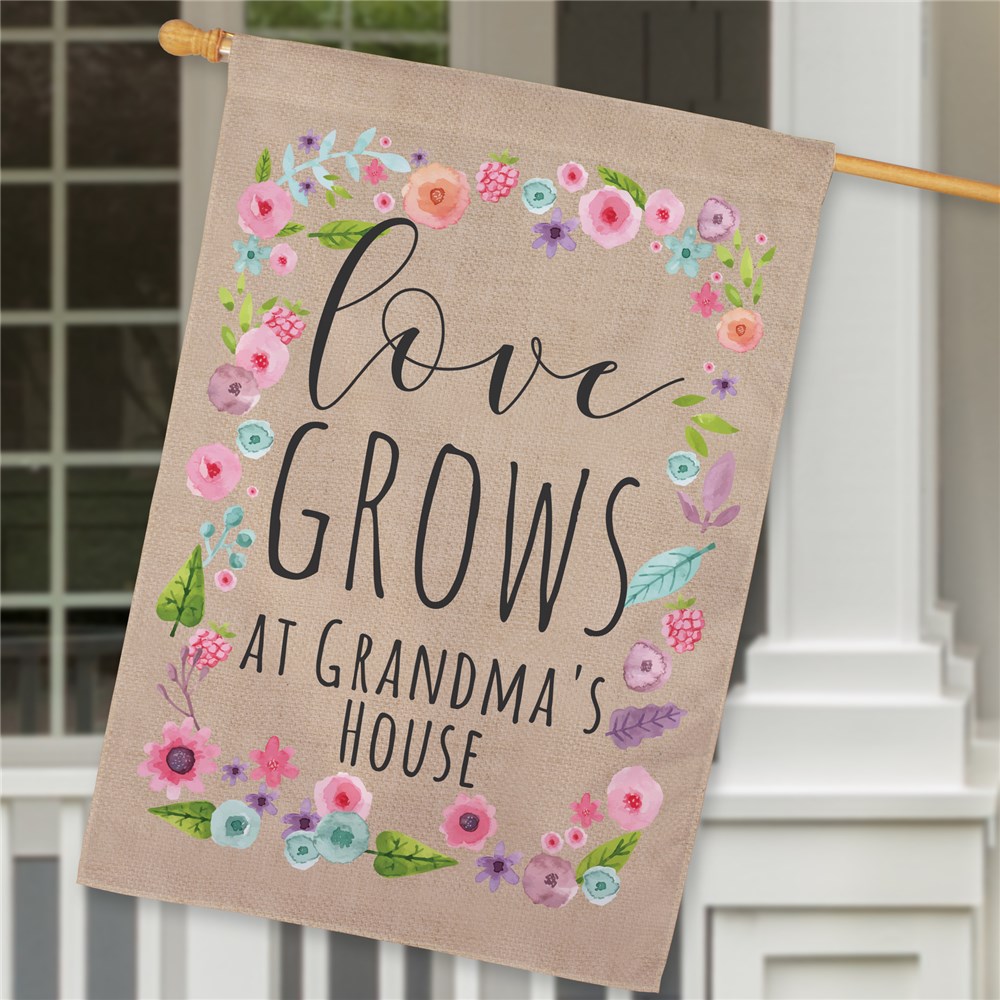Our Personalized Love Grows Here House Flag will look perfect displayed on Grandma's front porch!