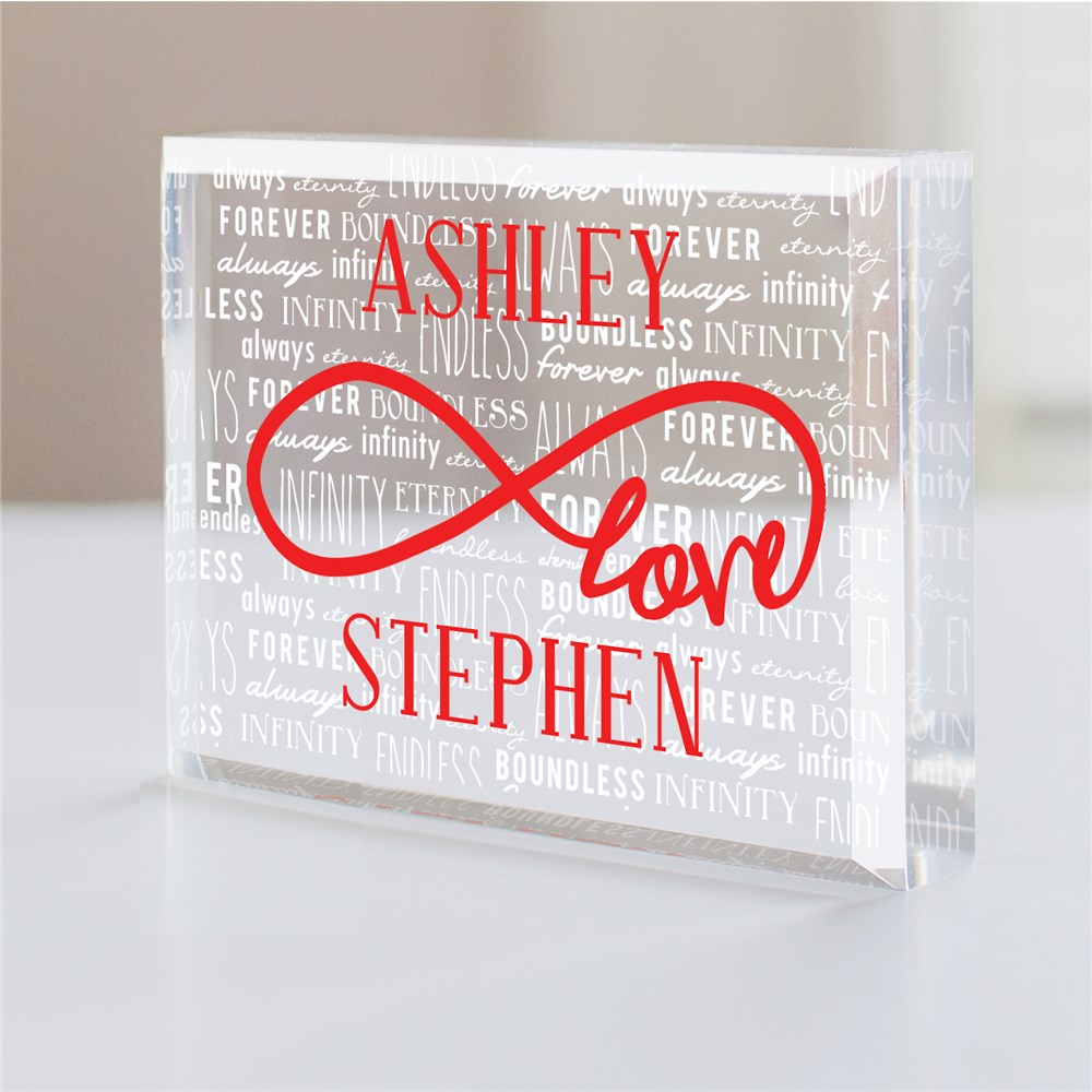 Show your infinite love for each other by displaying this Personalized Love Infinity Acrylic Keepsake in your home.