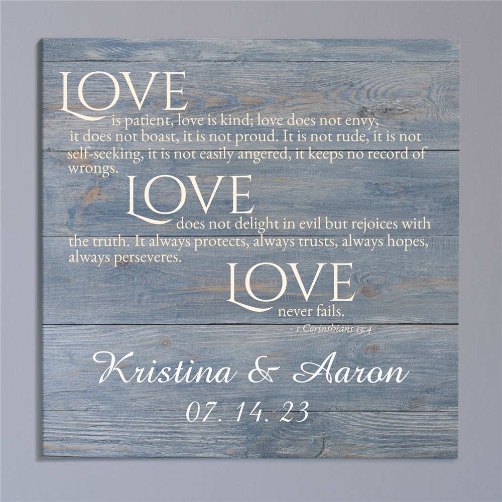 A long-standing and true sentiment, this Love Is Patient Personalized Wall Art is perfect for any couple, newlyweds or as a housewarming gift!