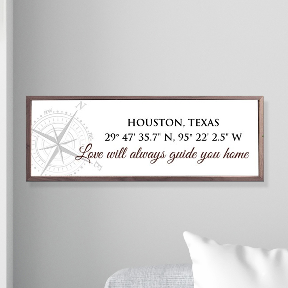Display the coordinates of your loving home on our Personalized Love Will Guide You Home Coordinates Wall Sign.