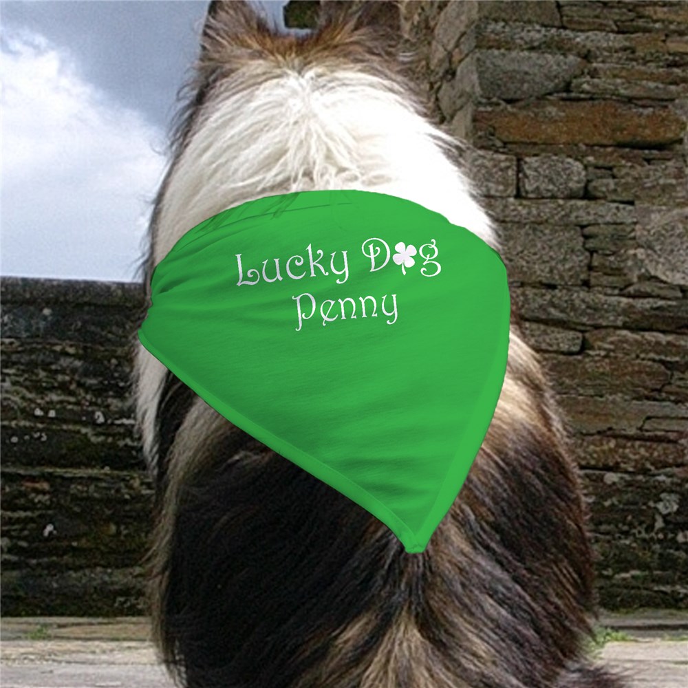 Additional Details Make sure you get this adorable bandana as a personalized pet gift for the dog lovers on your shopping list! This would make a great decorative accessory for your dog for St. Patrick's Day, showing off your Irish pride, or just because you feel lucky to have them! Our circle of green pet bandana is great for St. Patrick's Day or just showing Irish Doggy pride year round!