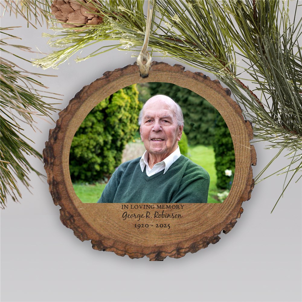 Personalized Memorial Photo Ornament | Rustic Wood
