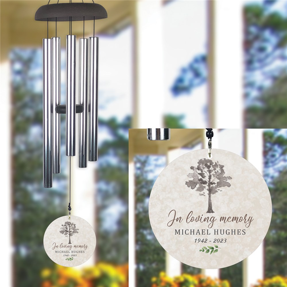 This heartfelt wind chime with can be personalized with any custom message line and memorial years.