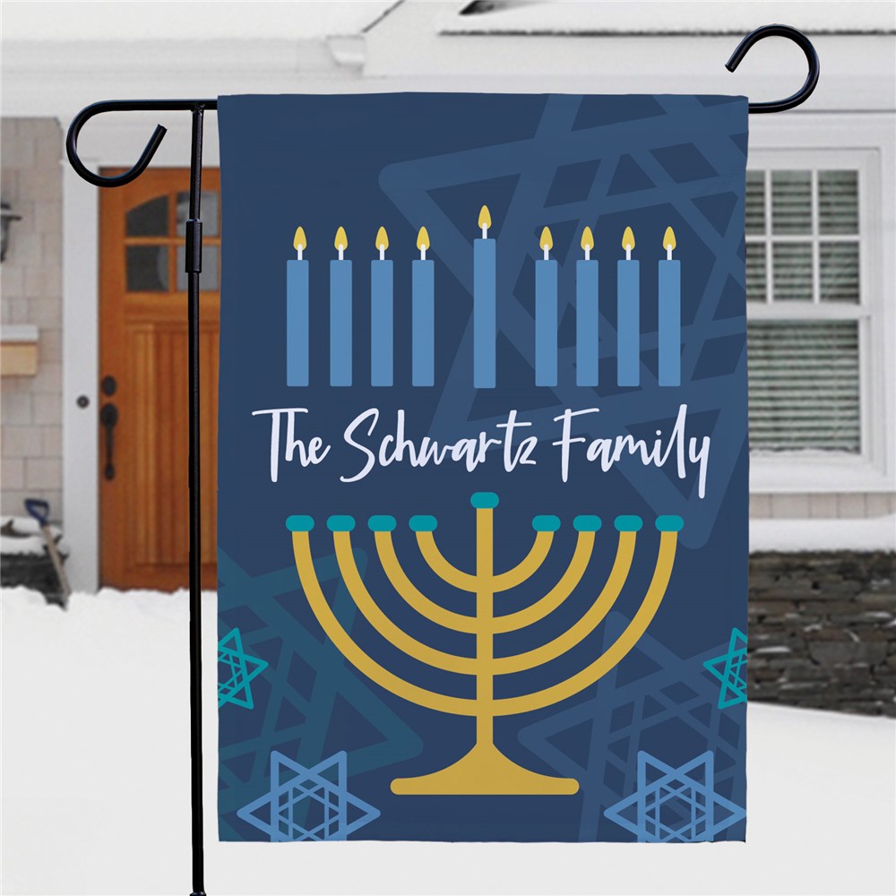 Celebrate this special time of year with our Personalized Menorah Garden Flag.