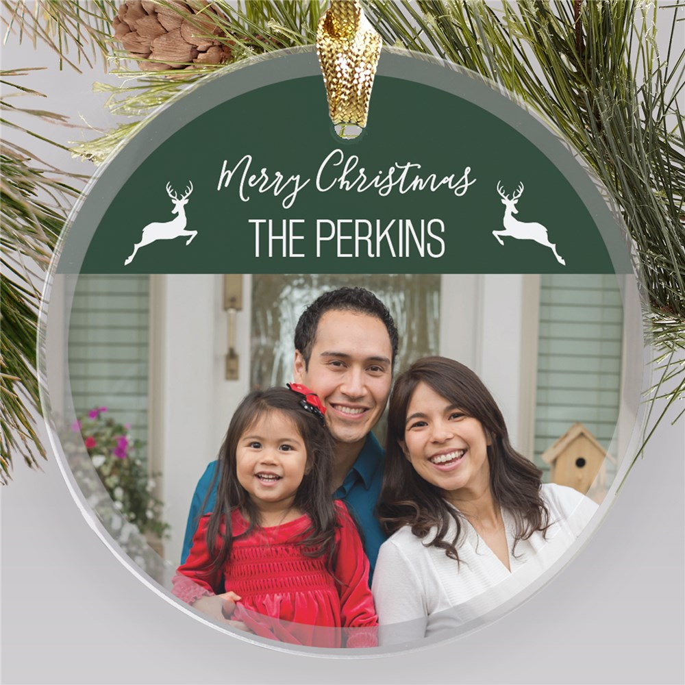 Add your favorite family photo to your Christmas tree this year with our Personalized Merry Christmas Photo Round Glass Ornament.