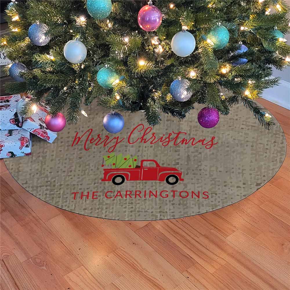 Personalized Merry Christmas Red Truck Christmas Tree Skirt