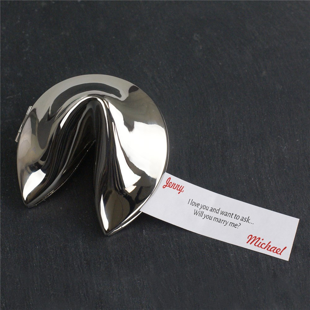 Create an amazing fortune that lies ahead for you and your special someone when you give a gift of this Personalized Message Silver Fortune Cookie.