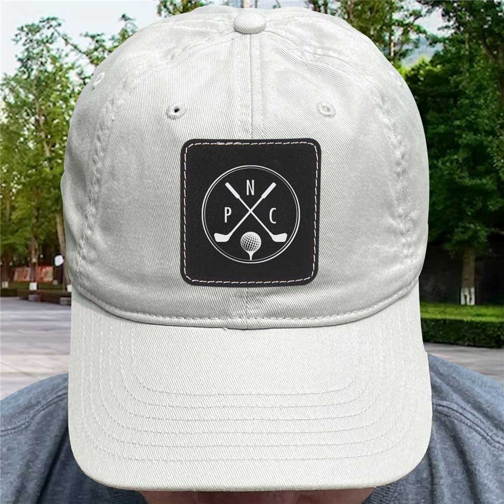 Sport our Personalized Monogram Golf Clubs Baseball Hat with Patch out on the course to keep the sun out of your eyes and to protect your head.