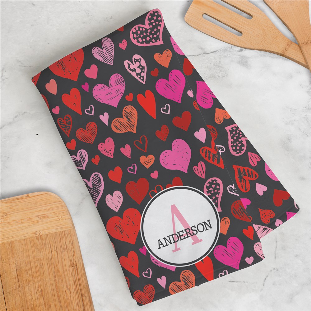 Decorate for Valentine's Day with this adorable Personalized Multi-Colored Hearts Dish Towel.