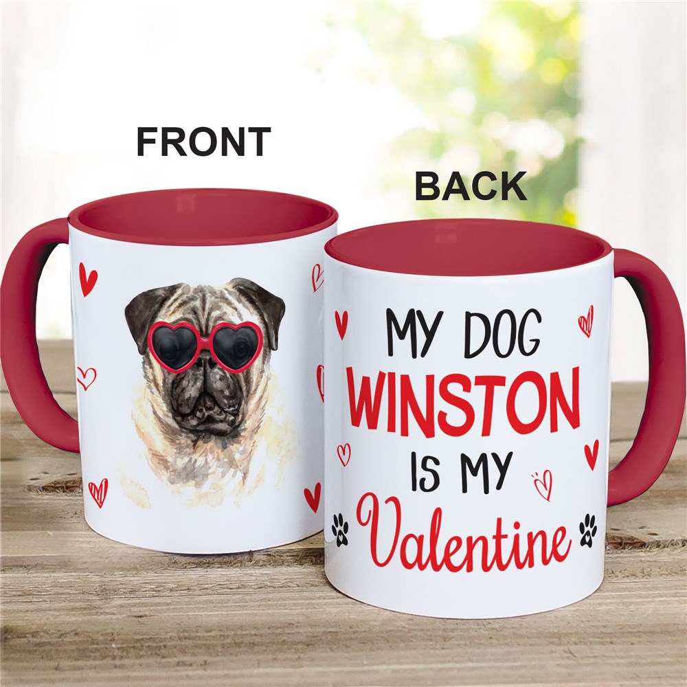 This Personalized My Dog Is My Valentine Red Handle Coffee Mug is the perfect gift for the dog lover in your life.