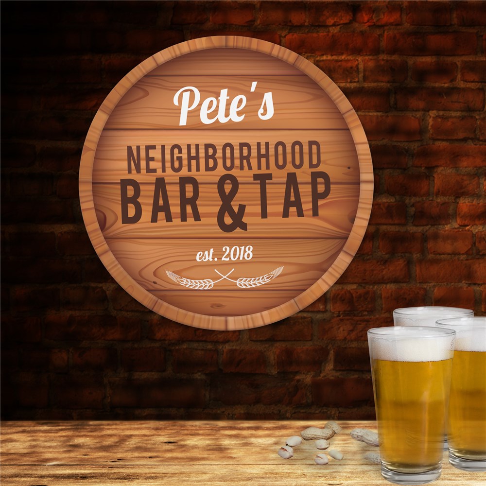 Spruce up your home bar with our Personalized Neighborhood Bar and Tap Wall Sign!