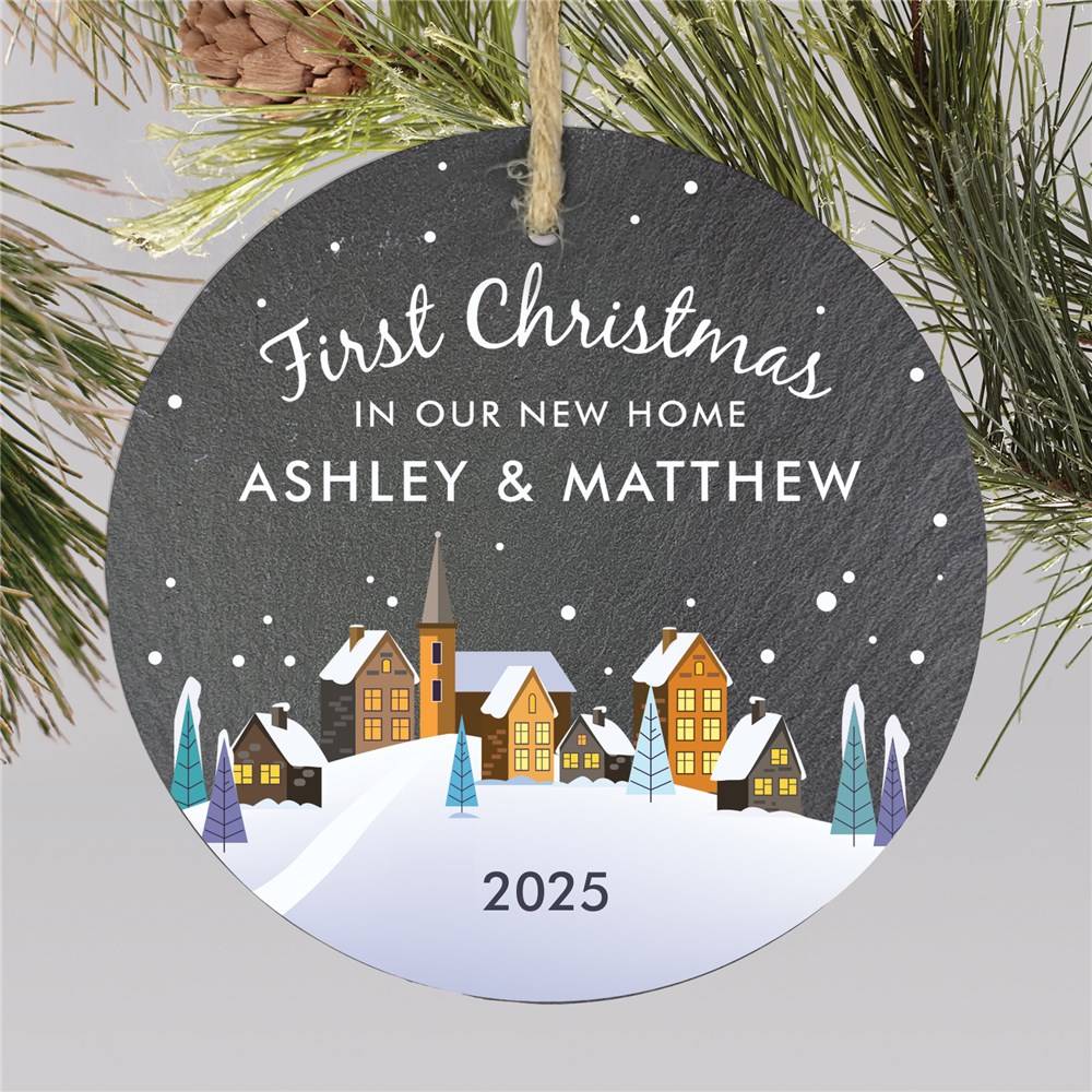 Commemorate this special Christmas with our Personalized New Home Slate Ornament!