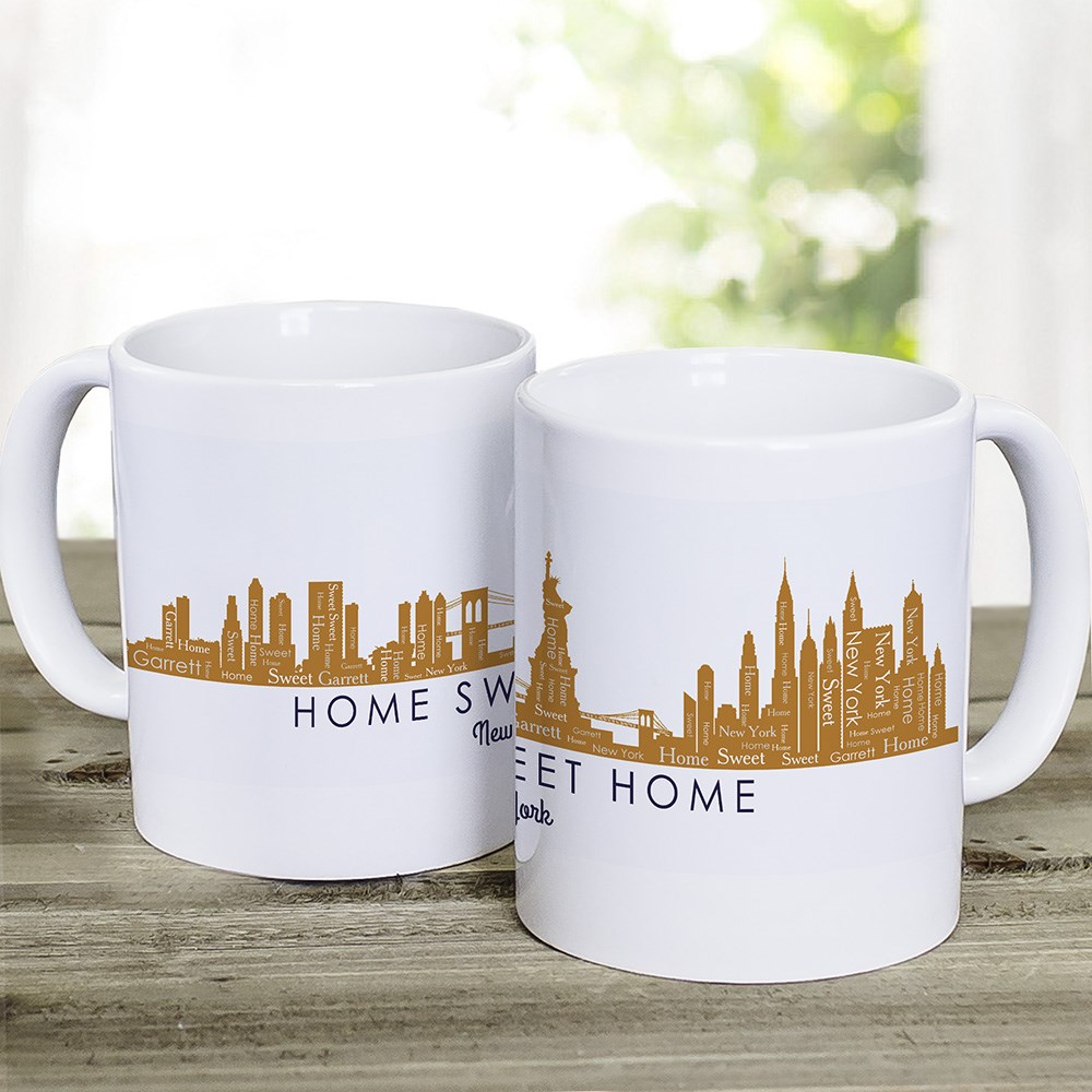 Wake up to a beautiful morning in your favorite city with our Personalized New York Skyline Word Art Mug!Personalize this mug using our