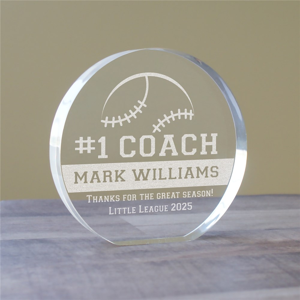 Award your favorite coach with this Personalized Number One Coach Round Acrylic Keepsake.