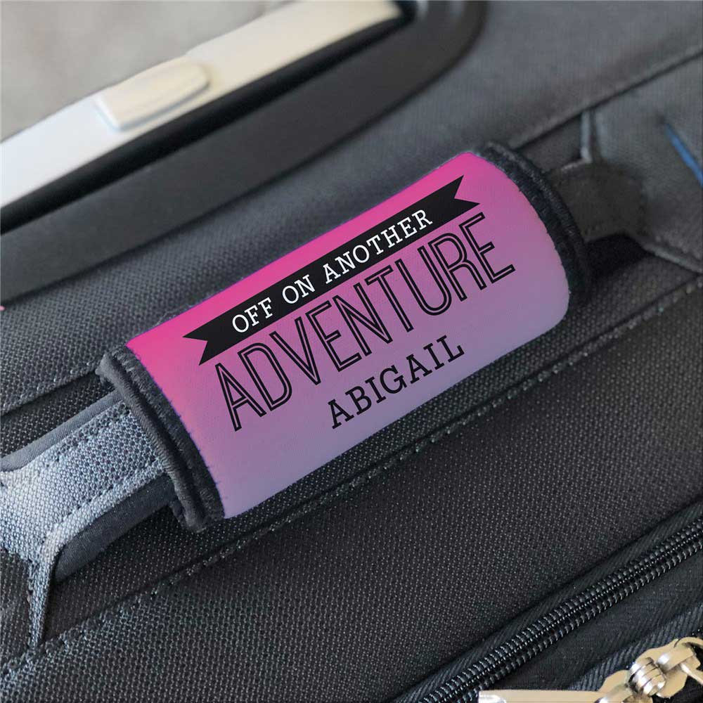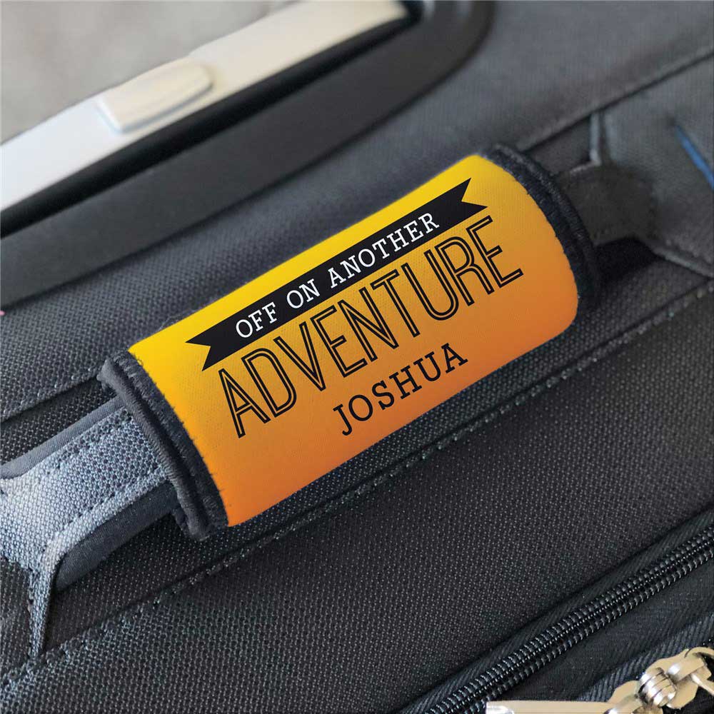 Our Personalized Off On Another Adventure Luggage Grip is a great accessory for any frequent traveler!