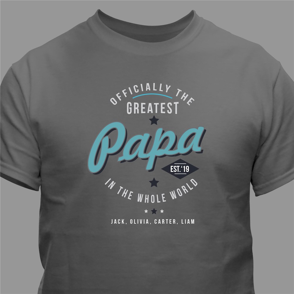 There's no one else out there like him. Let him know just how special he is with our Officially The Greatest Personalized T-Shirt. We'll custom create these Personalized Grandparent Gifts with any title , any year and up to 30 names. Makes great personalized Father's Day shirts and gift ideas for birthdays or any special occasion!