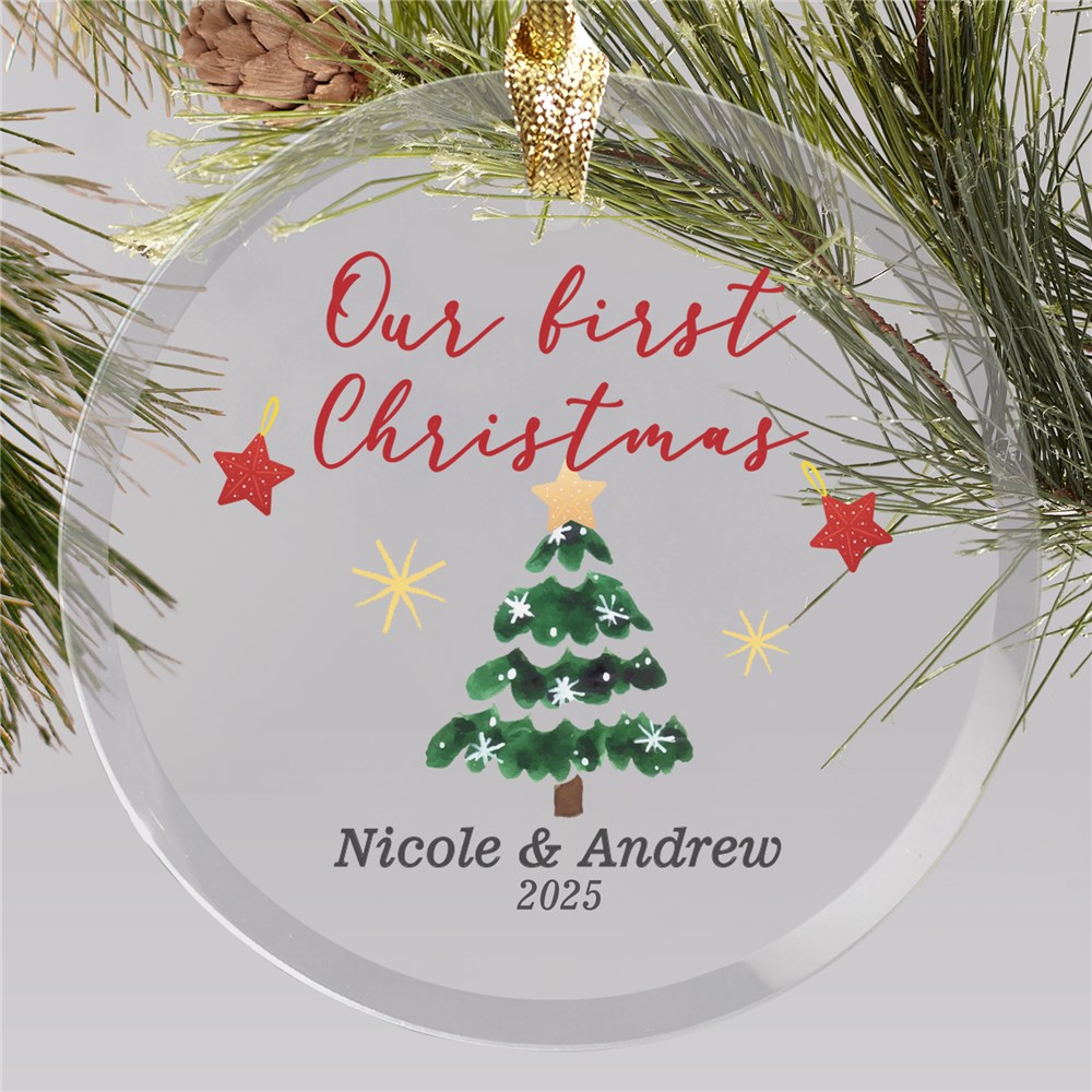 Your first Christmas together will be a special one; make it memorable with our Personalized Our First Christmas with Tree Round Glass Ornament!