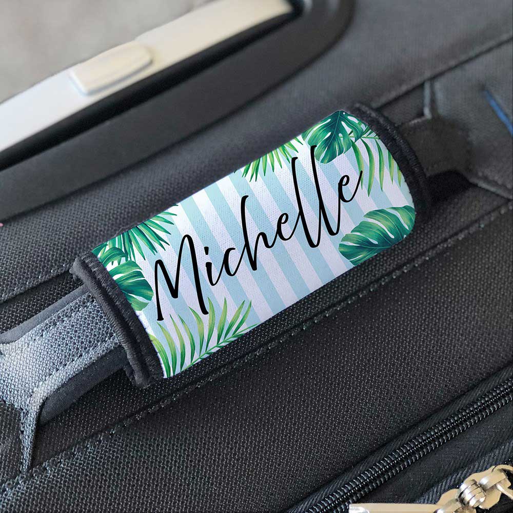 Our Personalized Palm Leaves Luggage Grip is a perfect accessory to have on your next tropical vacation.