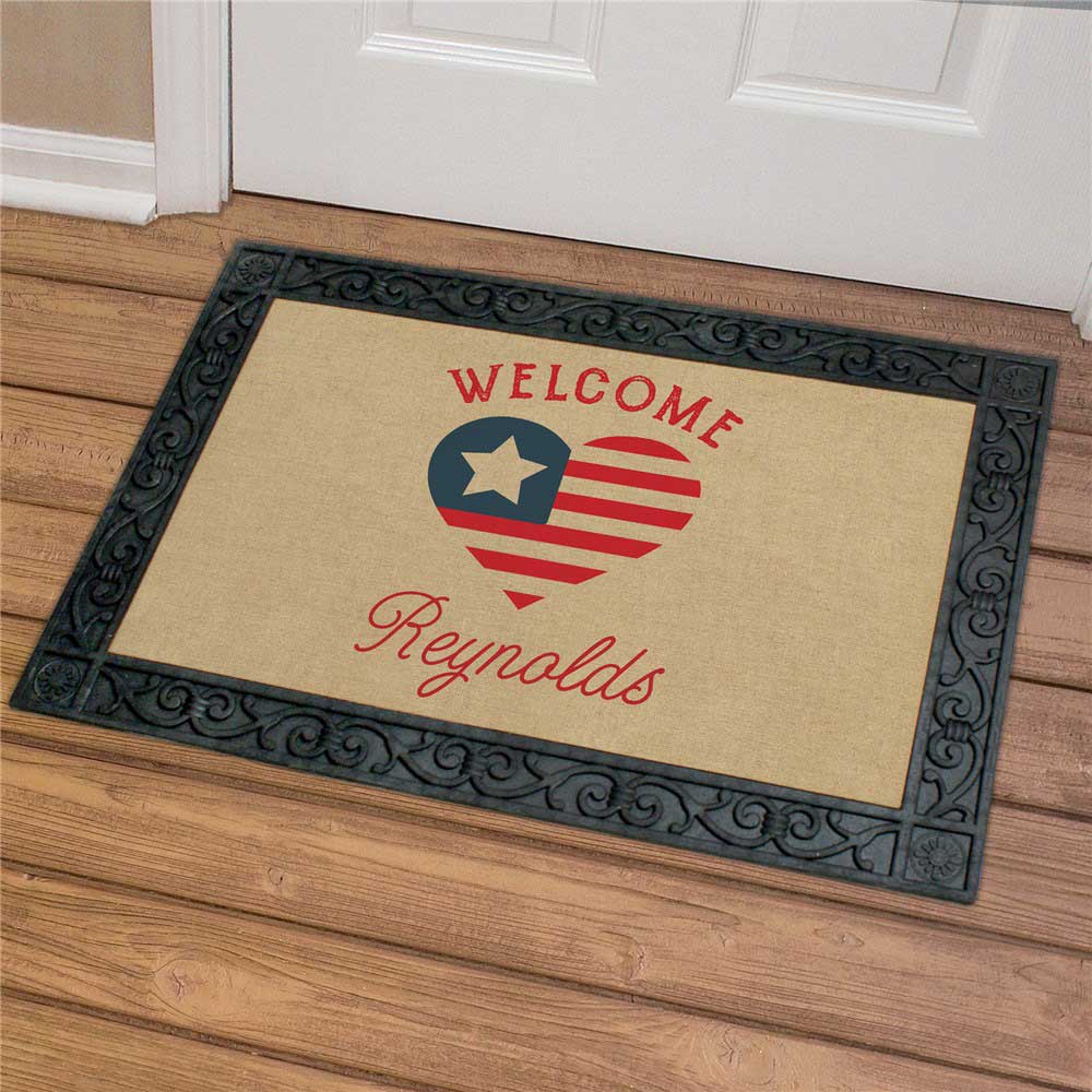 Show off your patriotic spirit and dress the front entrance of your home with this personalized welcome doormat.