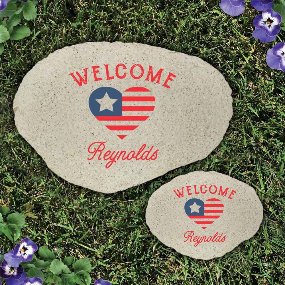 Decorate your outdoor space for the 4th of July with our Personalized Garden Stone with Heart Shaped American Flag!
