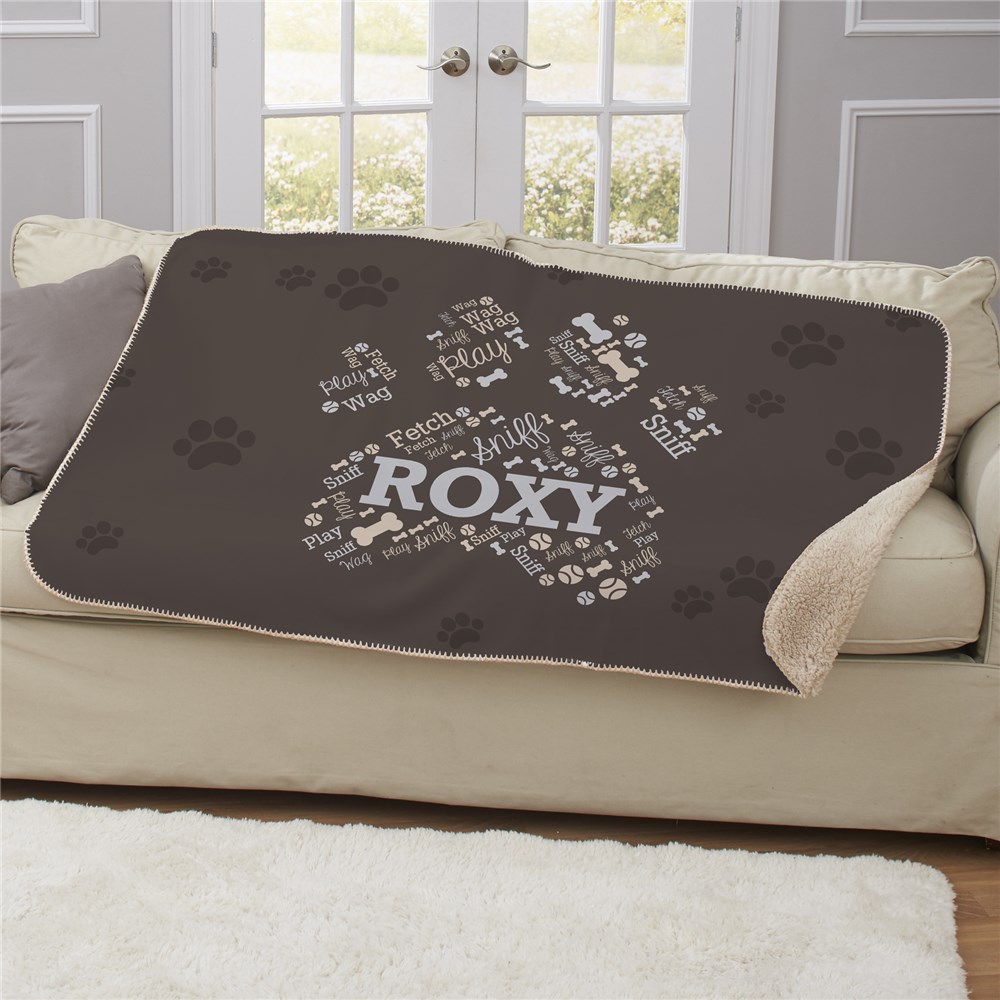 This unique Personalized Paw Word-Art Sherpa is sure to be the new family favorite blanket.
