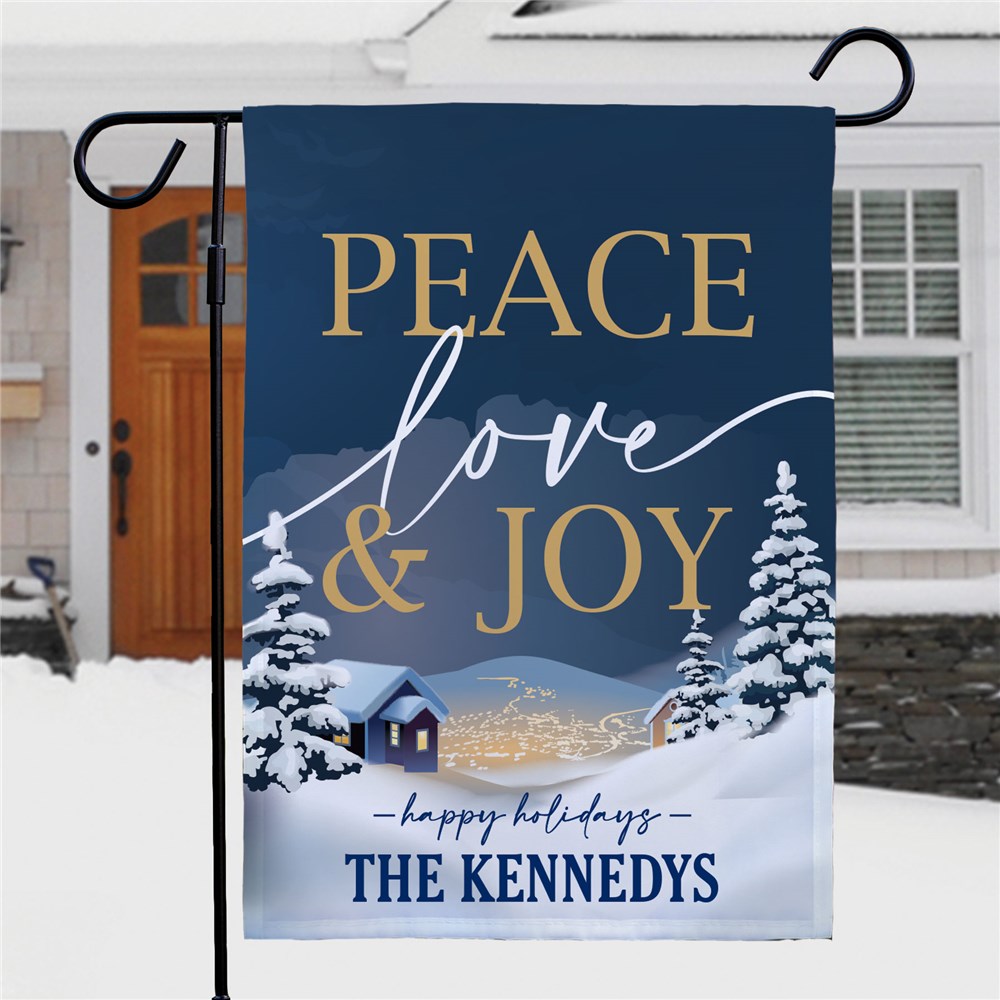Personalized Peace Love and Joy with Winter Town Garden Flag