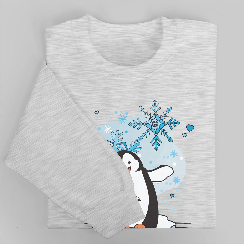 Stay warm in this cool personalized penguin sweatshirt. Available in three colors as well as youth and adult sizes, this custom Personalized Christmas Shirt will be embroidered with any name up to 16 letters on the penguin's cute belly.