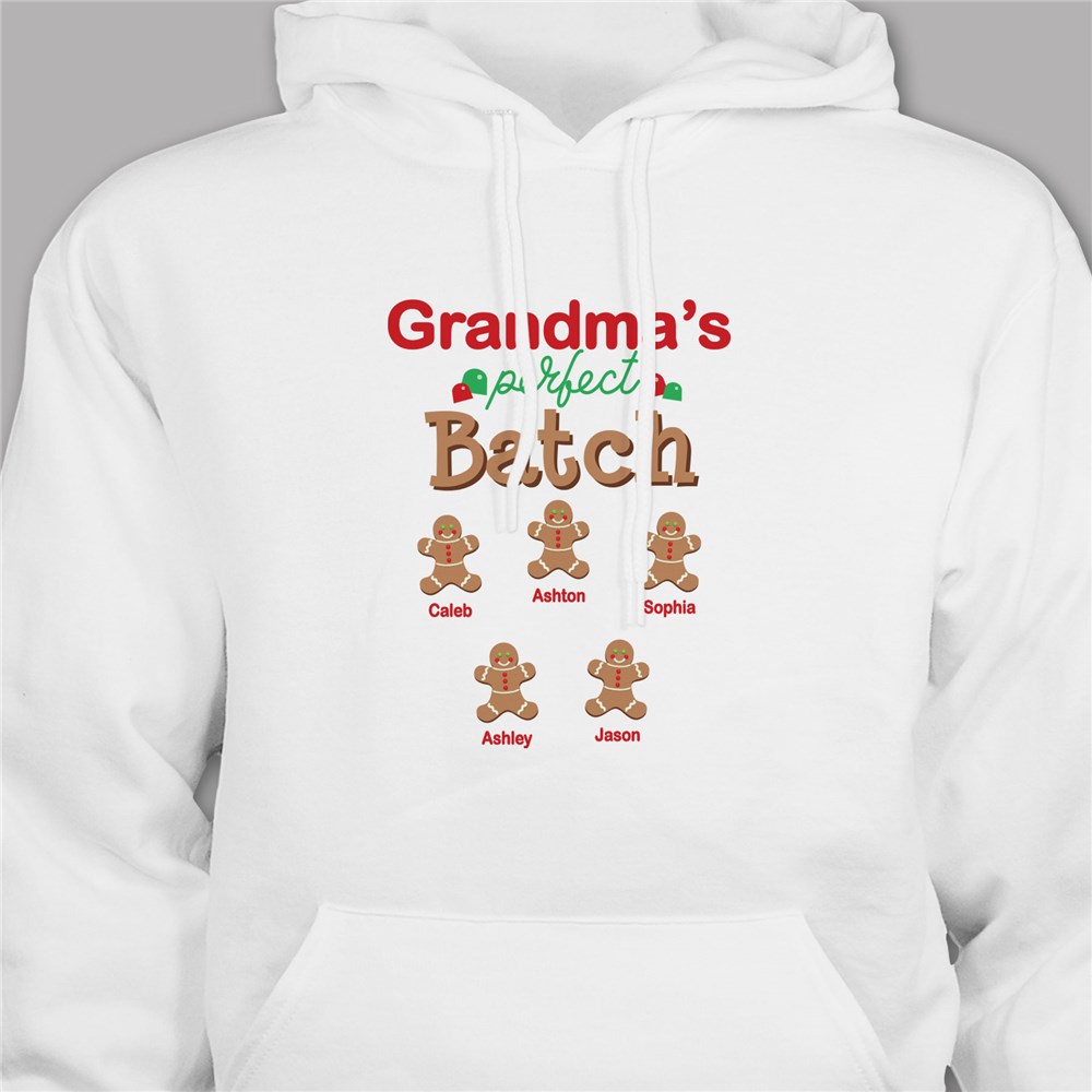 Grandma will be thrilled to display her "perfect batch" on our Personalized Perfect Batch Gingerbread Hooded Sweatshirt.